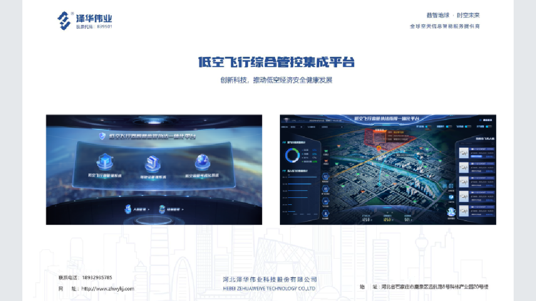 河北泽华伟业科技股份有限公司成立于2005年,是一家专注于软件开发的国家级高新技术企业,全球空天信息智能服务提供商。目前已通过ISO9001质量管理体系和CMMI成熟度3级认证。2016年成功挂牌新三板,拥有30余项软著及专利。公司始终保持着高度的社会责任感,持续致力于气象、农业、遥感、医药、低空经济等多领域的信息化发展。公司先后提出”智慧气象”、“智慧农业”、“智慧遥感”、“智慧医药”等行业信息化发展新模式。业务遍布北京、天津、河北、山东、辽宁、吉林、内蒙古、陕西、青海、甘肃、新疆、西藏、福建、宁夏等国内多个省份。与各级政府、事业单位及行业相关大中企业建立了稳定的合作关系。优秀的产品、全方位的服务、诚信的态度,赢得了客户的高度认可。企业愿景-—做中国一流的软件企业。产品信息
