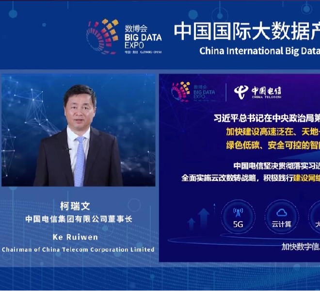 中国电信集团有限公司董事长、党组书记柯瑞文在2022数博会开幕式上作主题演讲