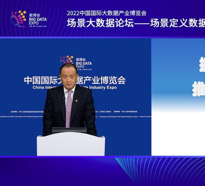 中国科学院院士梅宏在2022数博会场景大数据论坛上作主题演讲