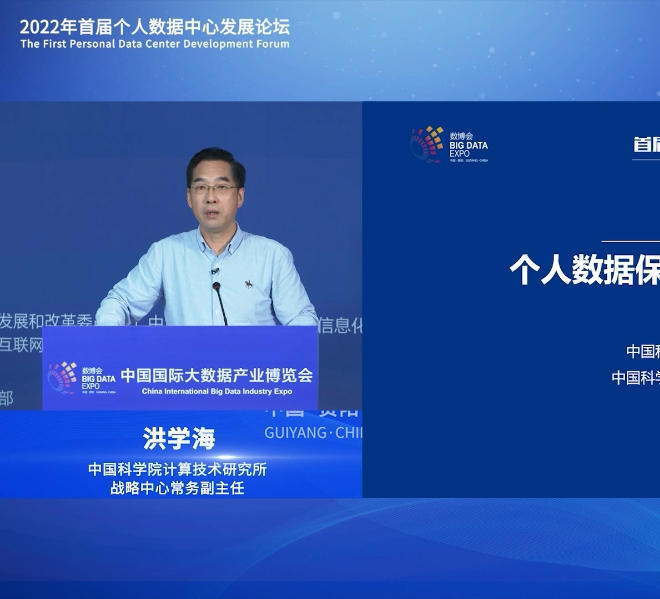中国科学院计算技术研究所战略中心常务副主任洪学海在2022数博会首届个人数据中心发展论坛上作主题演讲