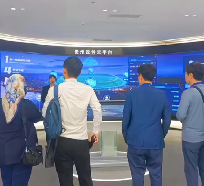 2023数博会设置了不同的观摩路线和观摩点,图为来自全球各地的嘉宾们正在云上贵州大数据公司了解“政务云调度系统”。