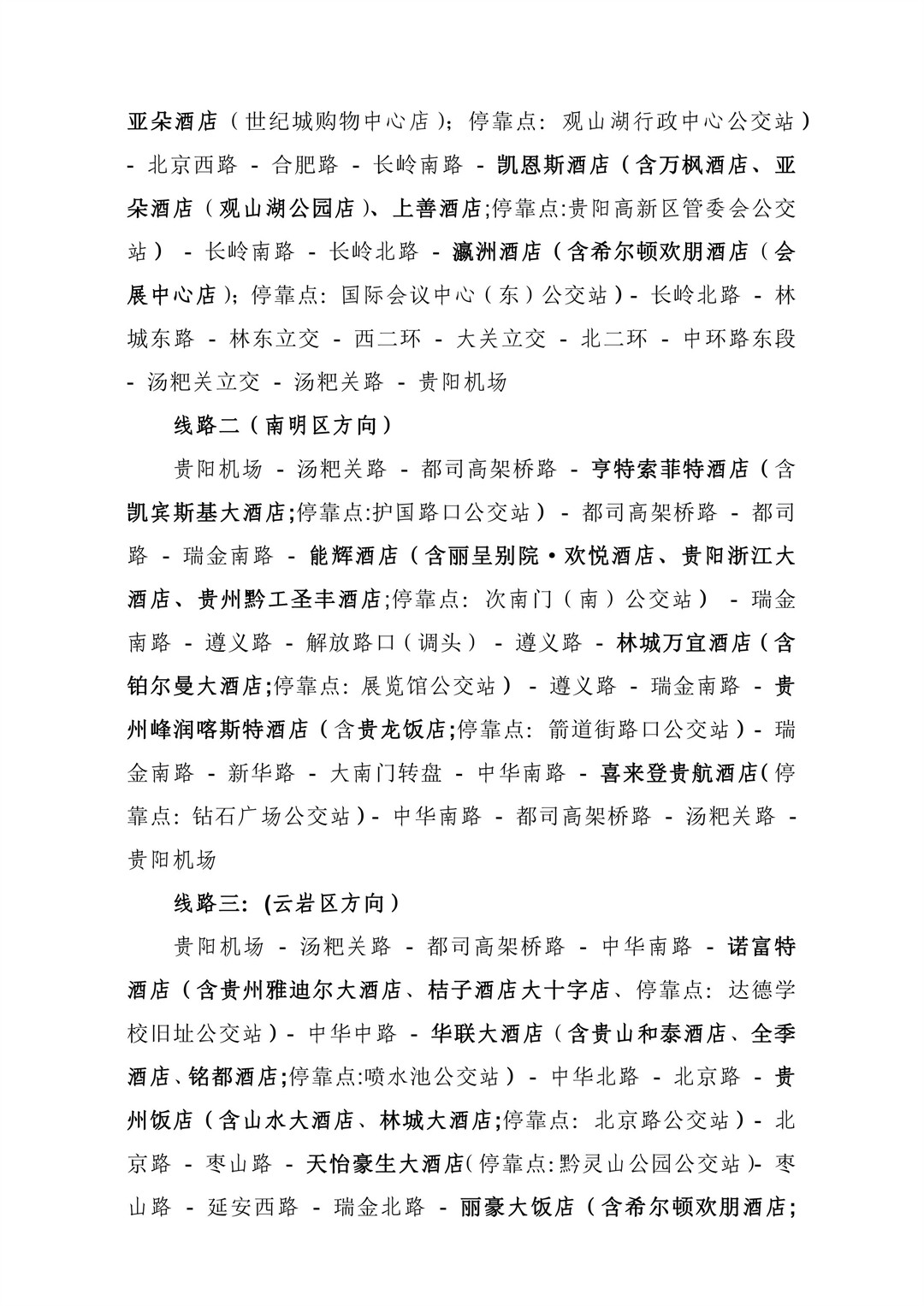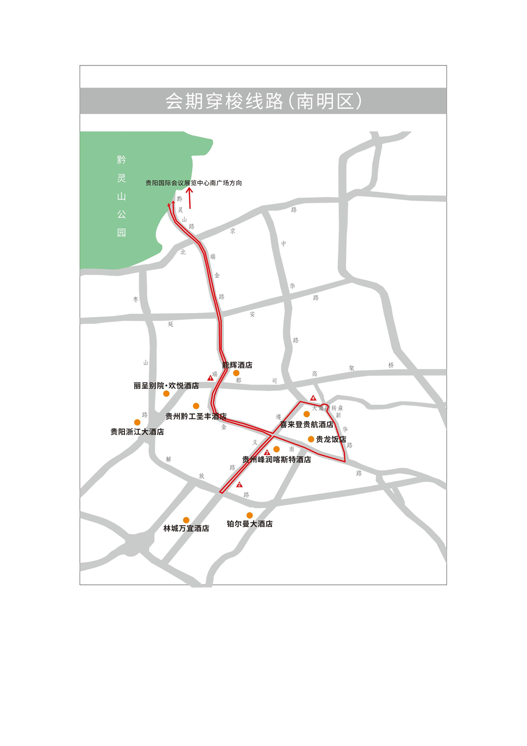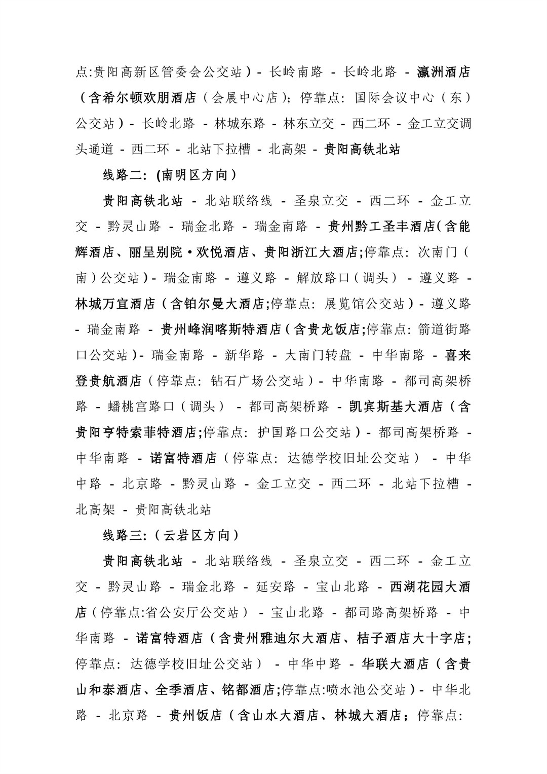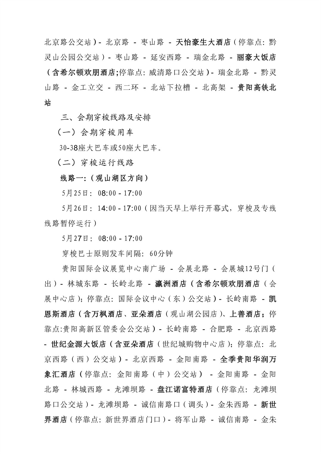 包括贵阳龙洞堡国际机场和贵阳高铁北站的接机、接站穿梭线路,涵盖观山湖区、云岩区及南明区.另外,数博会召开期间开通贵阳国际会展中心南广场往返观山湖区、云岩区及南明区各相关酒店穿梭巴士线路。
