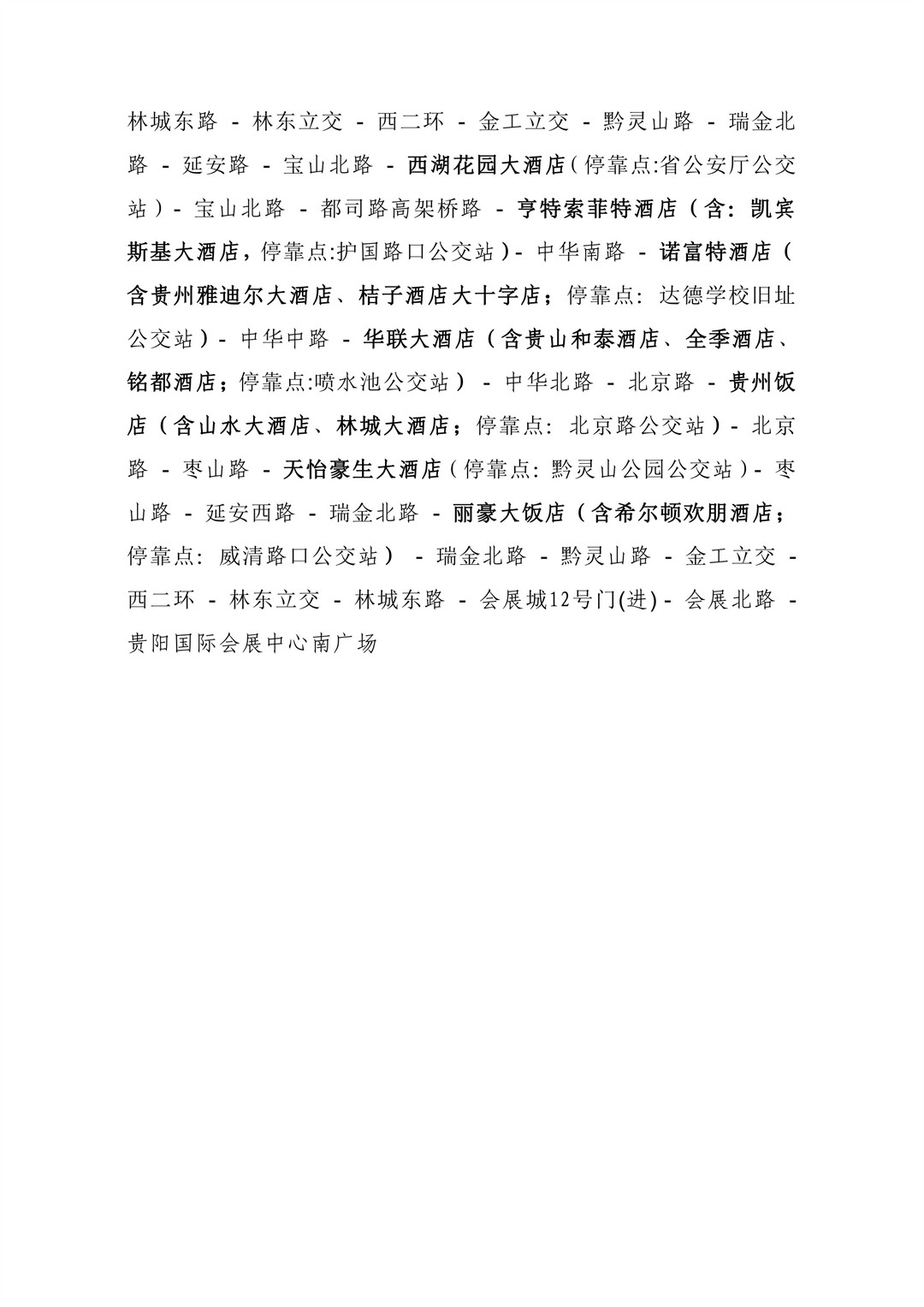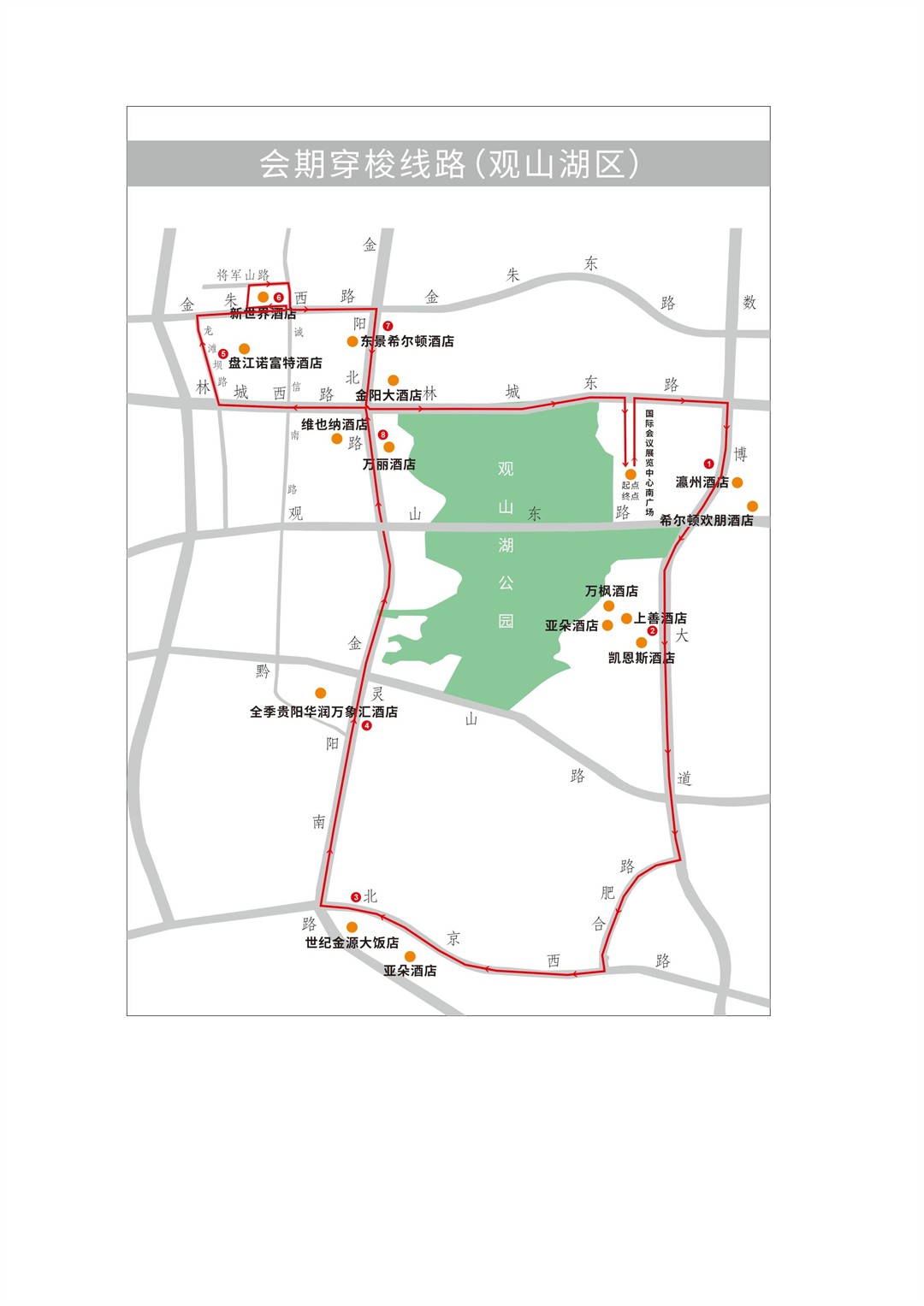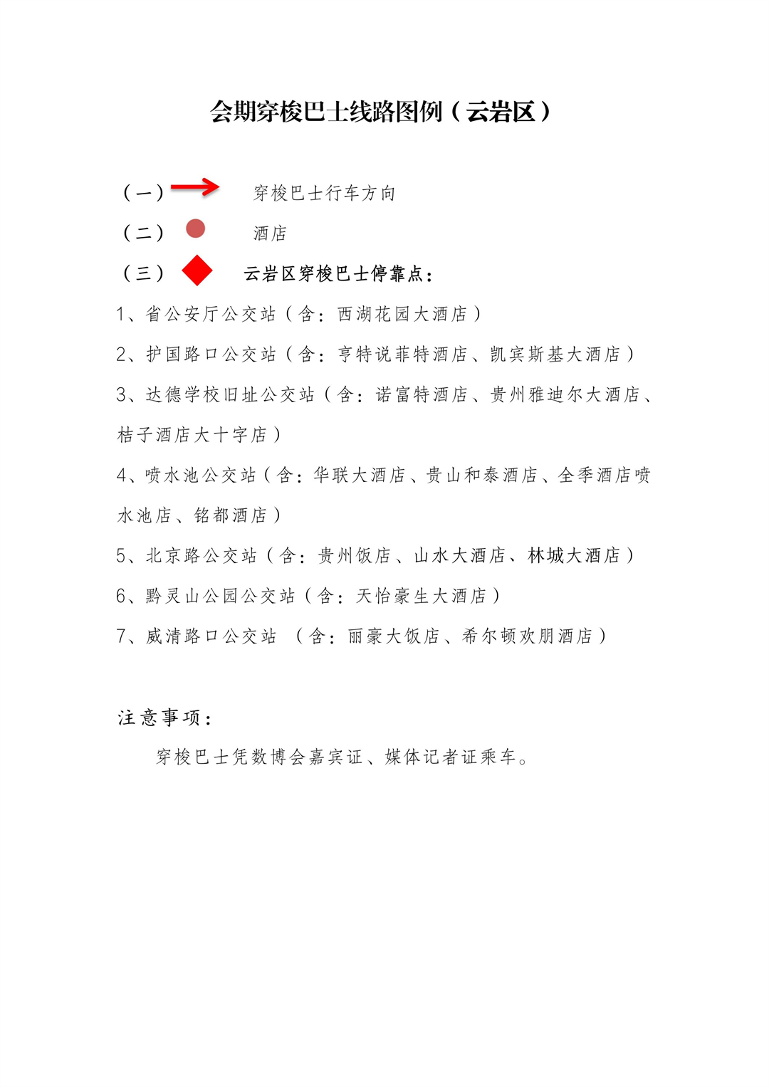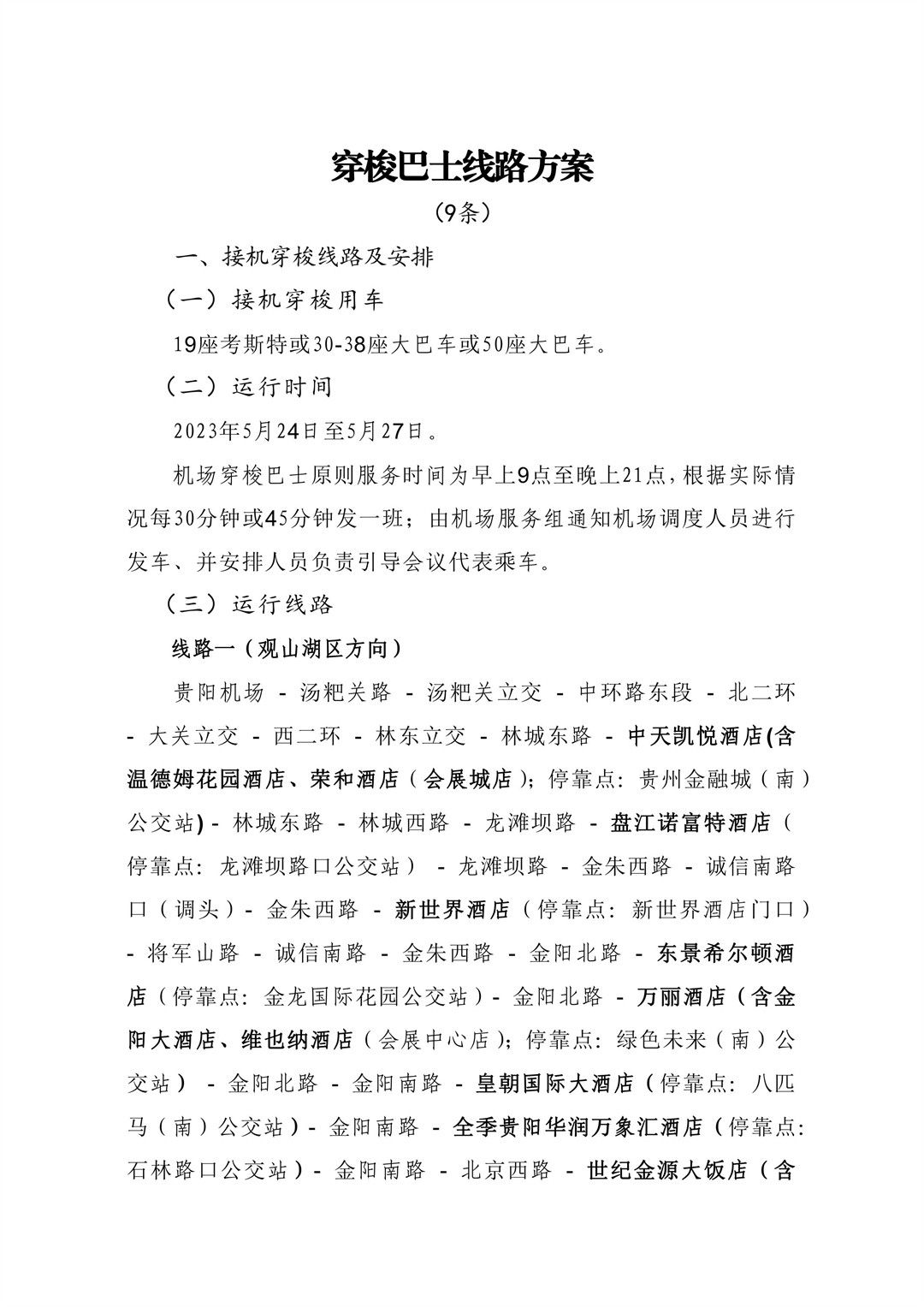 包括贵阳龙洞堡国际机场和贵阳高铁北站的接机、接站穿梭线路,涵盖观山湖区、云岩区及南明区.另外,数博会召开期间开通贵阳国际会展中心南广场往返观山湖区、云岩区及南明区各相关酒店穿梭巴士线路。